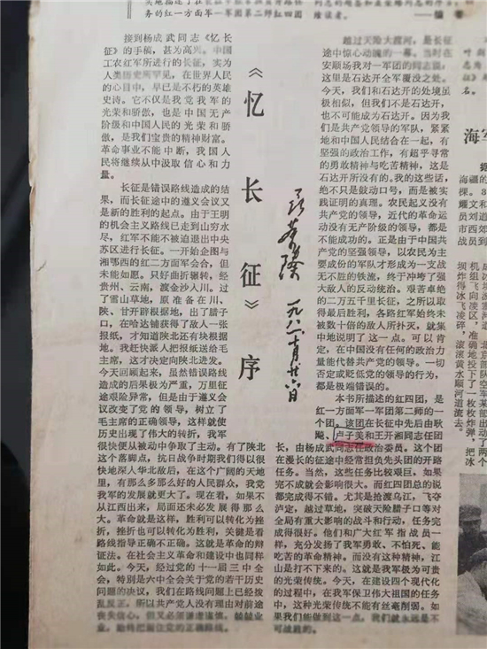 1982年3月16日,《人民日報》《解放軍報》等報發(fā)表《憶長征》序言。