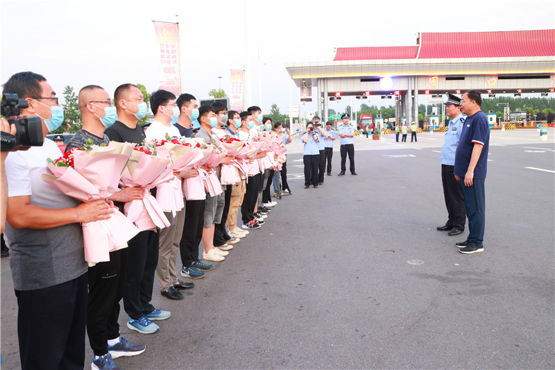 當(dāng)日19時(shí)許,示范區(qū)二級(jí)調(diào)研員丁有亮,示范區(qū)公安分局黨委書(shū)記、局長(zhǎng)何學(xué)民等同志前往迎接,歡迎勝利歸來(lái)的抓捕民警。當(dāng)抓捕組車輛駛出高速路口時(shí),現(xiàn)場(chǎng)響起熱烈的掌聲。丁有亮、何學(xué)民與參戰(zhàn)民警一一親切握手,對(duì)凱旋的民警表示歡迎和祝賀,民警代表將象征勝利和榮譽(yù)的鮮花獻(xiàn)給抓捕組民警。丁有亮表示向不辱使命、不畏艱險(xiǎn)、勇打勝仗的參戰(zhàn)民警表示慰問(wèn),并要求他們把握戰(zhàn)機(jī),繼續(xù)擴(kuò)大戰(zhàn)果,再接再厲,再立新功。何學(xué)民指出,示范區(qū)公安分局將乘勢(shì)而上、提振士氣,縱深開(kāi)展“迅雷”行動(dòng),出重拳打擊電信詐騙犯罪行為。