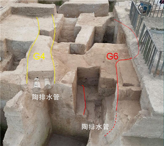 之后,考古隊(duì)新發(fā)掘出四組龍山時(shí)期陶排水管道,其中兩組位于南城門(mén)附近。2019年,又在城內(nèi)高臺(tái)式排房的室外墊土之下發(fā)現(xiàn)兩組東西向敷設(shè)的陶排水管道。這些陶排水管道,向西聯(lián)通這座古城的中軸線。這些陶排水管長(zhǎng)35到45厘米,表面裝飾籃紋、繩紋和方格紋,兩端有子母口,節(jié)節(jié)套合,構(gòu)思精巧,它們或縱穿城墻基礎(chǔ),或沿排房建筑的外緣平行分布,兩端有進(jìn)、出水口,與城內(nèi)的東西或南北向的排水溝相連通,是目前國(guó)內(nèi)發(fā)掘的年代最早、最為完備的城市排水系統(tǒng),對(duì)于研究我國(guó)早期城市的水資源管理系統(tǒng)具有在重要的意義。從發(fā)現(xiàn)的陶排水管道的情況上我們可以大致推測(cè),平糧臺(tái)城址可能受到水患,當(dāng)時(shí)先民始終關(guān)心如何把城內(nèi)積水排到城外。