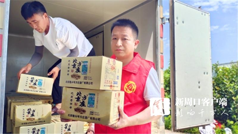 7月30日11時(shí)30分,在西華縣新的社會(huì)階層人士聯(lián)誼會(huì)牽頭下,北京方莊酒周口總代理負(fù)責(zé)人彭建立和員工一起載著價(jià)值6多萬(wàn)元的酒精、蚊香等物品相繼來(lái)到西華縣黃橋鄉(xiāng)、遲營(yíng)鄉(xiāng)、田口鄉(xiāng)等多個(gè)地方,親自將群眾最亟需的消毒、驅(qū)蟲用品送到他們手中。