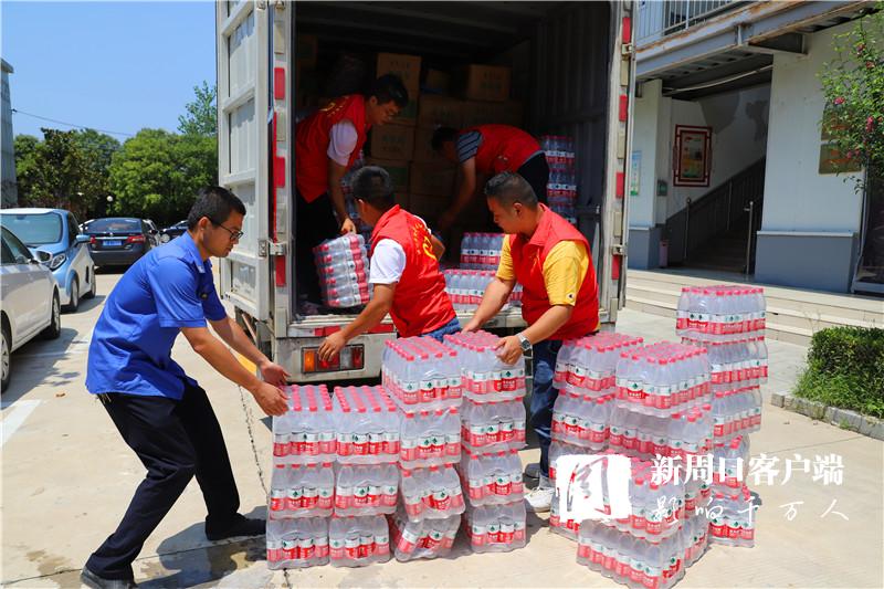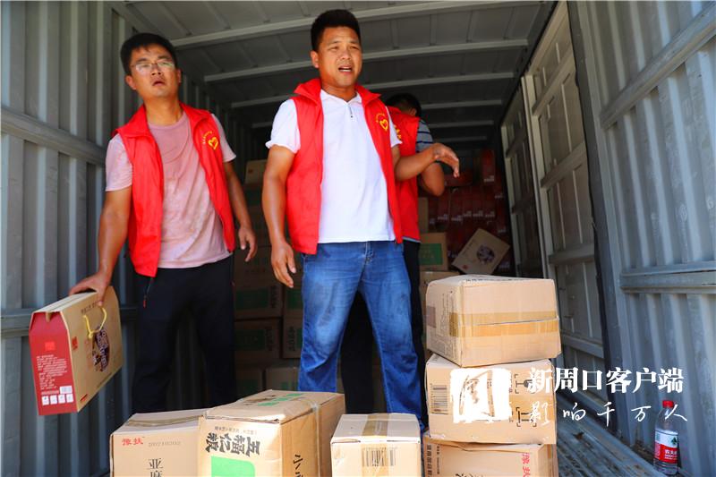 當天中午,掛著印有“昨天大家助我脫貧,今天我為救災(zāi)出力!”條幅的防汛救災(zāi)物資運輸車抵達周口港區(qū)。“要不是前兩天防御臺風(fēng)‘煙花’,我們早就來了。”隆古村黨支部書記段長春一下車就連忙慰問眾人。一同前往的還有6位年輕力壯的志愿者,他們不辭勞苦,和港區(qū)消防、城管人員一起頂著烈日,用了半個多小時將滿車物資搬運到位。