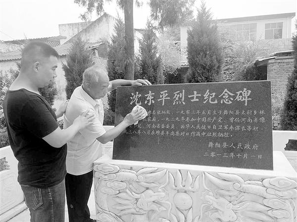 當地政府為緬懷英烈,在沈東平的家鄉(xiāng)舞陽縣太尉鎮(zhèn)林莊村,為沈東平建起墓地。