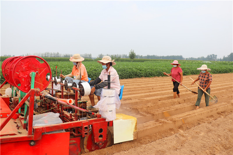 菜苗補(bǔ)栽全面展開。在韭園鎮(zhèn)蔬菜種植大戶李興華的胡蘿卜基地,2臺進(jìn)口大型播種機(jī)、起壟機(jī)來來回回,拉滴灌管的農(nóng)民工滿頭大汗搶播搶種。截至目前,全縣設(shè)施蔬菜改種補(bǔ)種2600余畝,修復(fù)大棚982座,6個重點育苗基地已恢復(fù)育苗能力,近期已育苗800萬株。
