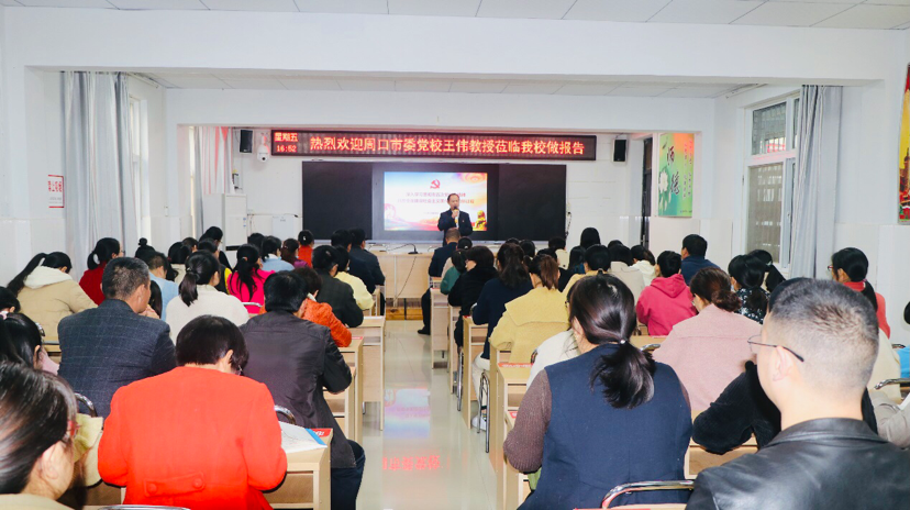 宣講會上,市委黨校宣講團講師王偉以“深入學習貫徹市五次黨代會精神、開啟全面建設社會主義現(xiàn)代化周口新征程”為主題,從充分認識市五次黨代會的重大意義、準確把握市五次黨代會的精神要義、全面落實市五次黨代會的目標任務三方面,詳盡解讀了市五次黨代會主旨報告的精神實質(zhì)和豐富內(nèi)涵。整場報告脈絡清晰、論述深刻、內(nèi)容豐富,既有深入淺出的理論闡述,又有結合我市發(fā)展的實例分析,更有教育實踐層面的對策思考,為該校教職工深入、完整、系統(tǒng)地領會市五次黨代會精神,有力推進貫徹落實黨代會精神提供了一把“金鑰匙”。