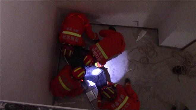 了解情況后,4名消防員立即深入地下室,利用擔架,先將老人保持原有姿勢轉(zhuǎn)移到擔架上,再用救援繩將老人綁在擔架上加以固定。最后,救援人員將擔架四角分別綁上救援繩,下方人員托扶擔架,上方人員將擔架平穩(wěn)的向上拉。經(jīng)過近30分鐘緊張救援,成功將被困老人救出,并交由醫(yī)護人員進行下一步處理。②10