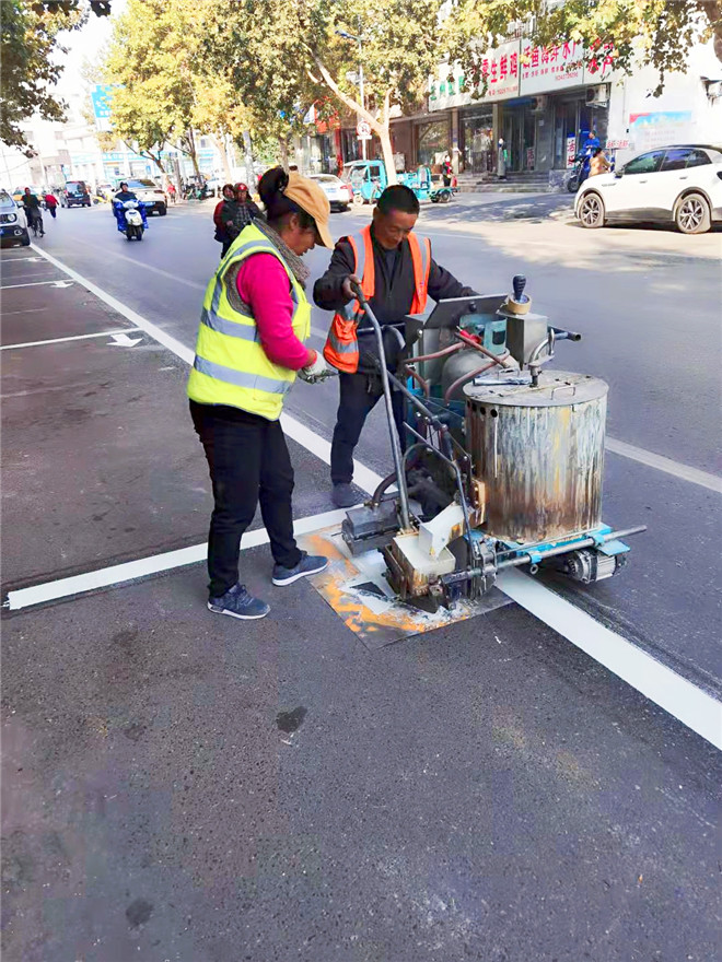 10月26日晚6時(shí)許,在周口大道與文體路交叉口附近,幾名工作人員正在使用熱熔畫線機(jī),對(duì)路面上不太清晰的斑馬線進(jìn)行重新施劃。“路面標(biāo)線是公路的‘無言哨兵’,覆畫后的道路交通標(biāo)線醒目美觀,一方面消除了安全隱患,保障了交通安全和暢通,另一方面也極大地美化、扮靚了沿線路域環(huán)境,成為城市文明的一道風(fēng)景線?!痹撠?fù)責(zé)人說。