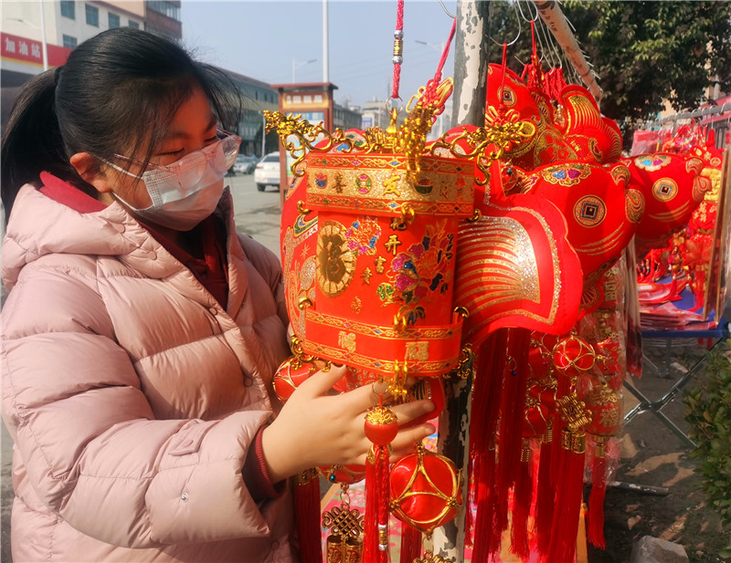 1月27日,市民在認(rèn)真挑選著新年的裝飾品。春節(jié)臨近,虎年生肖飾品、對聯(lián)、中國結(jié)、福字、大紅燈籠等“紅色年貨”火了年貨市場。據(jù)了解,各種寓意祥和的春聯(lián)、以老虎為主題的各種窗花、各種飾品最受市民歡迎。③10