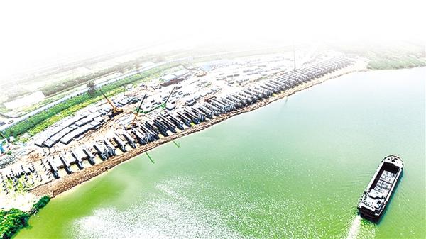 鹿邑港區(qū)玄武作業(yè)區(qū)于2021年5月底破土動工,批復(fù)岸線118米,建設(shè)2個500噸級泊位,設(shè)計(jì)年通過能力為散貨進(jìn)出口100萬噸。目前,鹿邑港區(qū)玄武作業(yè)區(qū)主體工程已全部完工,機(jī)械作業(yè)設(shè)備已全部到位。記者在現(xiàn)場看到,工人正在進(jìn)行后方陸域及服務(wù)區(qū)建設(shè)。