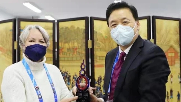 據(jù)北京冬奧組委消息,北京冬奧組委副主席楊樹安近日應(yīng)約在北京冬奧村會見美國奧委會與殘奧委會主席、美國冬奧代表團團長萊昂斯,并代為接受美奧委會向北京冬奧組委主席蔡奇贈予的榮譽獎杯。