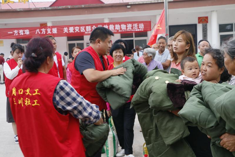 去年7月底,面對來勢洶洶的雨情汛情,三川社工迅速反應(yīng),立即組建了由60名社工、義工組成的防汛救災(zāi)突擊隊(duì),連續(xù)10天在賈魯河沿岸3個村莊和二板橋段開展防汛值守;組織40名社工、義工裝卸防汛救災(zāi)物資,向川匯區(qū)、西華縣、扶溝縣30多個防汛值守點(diǎn)和居民安置點(diǎn)運(yùn)送食物和救災(zāi)物資。