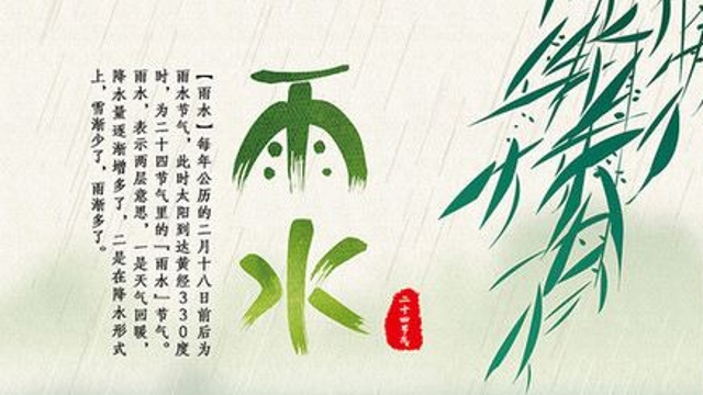 雨水(The rains),是二十四節(jié)氣之中的第二個節(jié)氣,位于每年正月十五前后(公歷2月18-20日),太陽到達(dá)黃經(jīng)330°,是為二十四節(jié)氣的雨水。此時,氣溫回升、冰雪融化、降水增多,故取名為雨水。雨水節(jié)氣時段一般從公歷2月18日或19日開始,到3月4日或5日結(jié)束。雨水和谷雨、小雪、大雪一樣,都是反映降水現(xiàn)象的節(jié)氣。