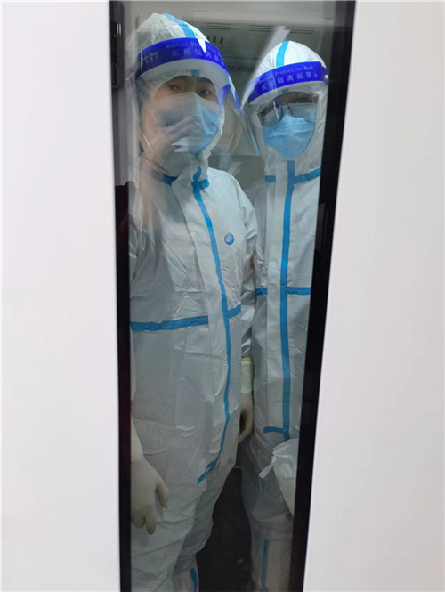 如果說有一座城叫眾志成城,那必定有一種力量叫檢驗擔(dān)當(dāng)。在幾十平方米的實驗室內(nèi),環(huán)境消毒、物資準備、接收標本、編號錄入、核酸提取、環(huán)境消殺、基因擴增、結(jié)果研判、高壓消毒、信息上報、表格填寫、室內(nèi)質(zhì)控、室間質(zhì)評……每一個環(huán)節(jié)都需要嚴格規(guī)范操作,不放過任何一個細節(jié)、不能有一絲毫紕漏。在核酸檢測過程中,王健嚴格遵守生物安全制度,標準穿戴三級防護裝備,帽子、N95口罩、防護服、護目鏡、乳膠手套、隔離衣……一個也不能少。為以最快速度出具檢測結(jié)果,確保實驗室安全,王健在低于標準大氣壓的負壓狀態(tài)下進行工作。三級防護和大量檢測工作時常會使他出現(xiàn)汗流浹背、呼吸不暢、頭痛等缺氧癥狀,對體力是一個極大挑戰(zhàn)。但他總能克服這些困難,不辜負黨和人民的期望,在抗擊新冠肺炎疫情的戰(zhàn)場上勇?lián)姑_鋒在前,為人民群眾筑起生命健康的第一道防線!