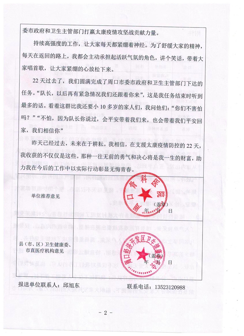 昨天已經(jīng)過去,未來在于耕耘。我相信,在支援太康疫情防控的22天,我收獲的不僅僅是這些。那種一往無前的勇氣和決心將是我一生的財(cái)富,助我在今后的工作中以實(shí)際行動彰顯無悔者春。②16