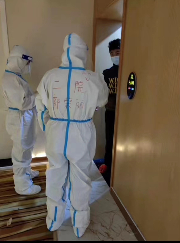 2022年3月22日太康縣出現(xiàn)疫情,作為一名抗疫“老人”,面對這樣的形勢郭榮麗再次投入到抗疫工作中,從3月22日深夜接到通知急需到福港隔離點接收隔離人員,到4月25日所有的隔離人員安全隔離,其間她從未離開過隔離點。