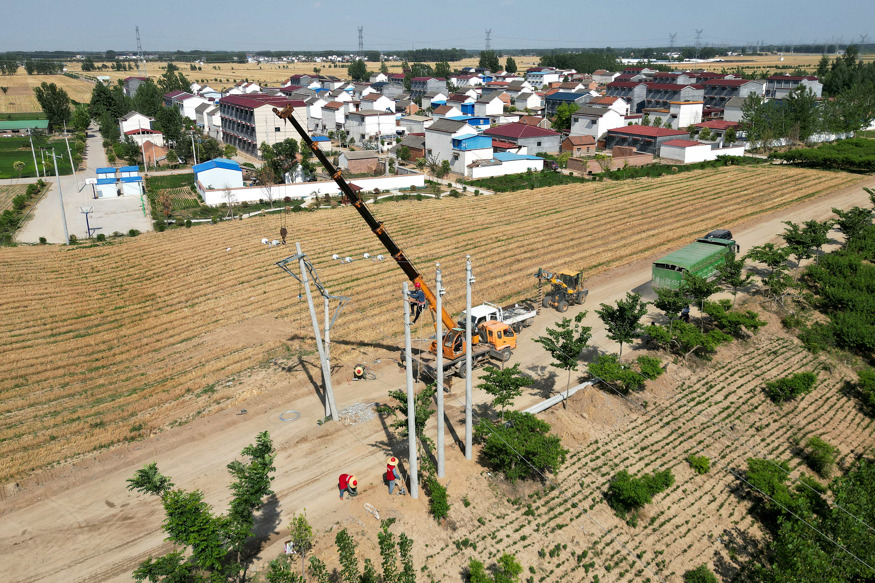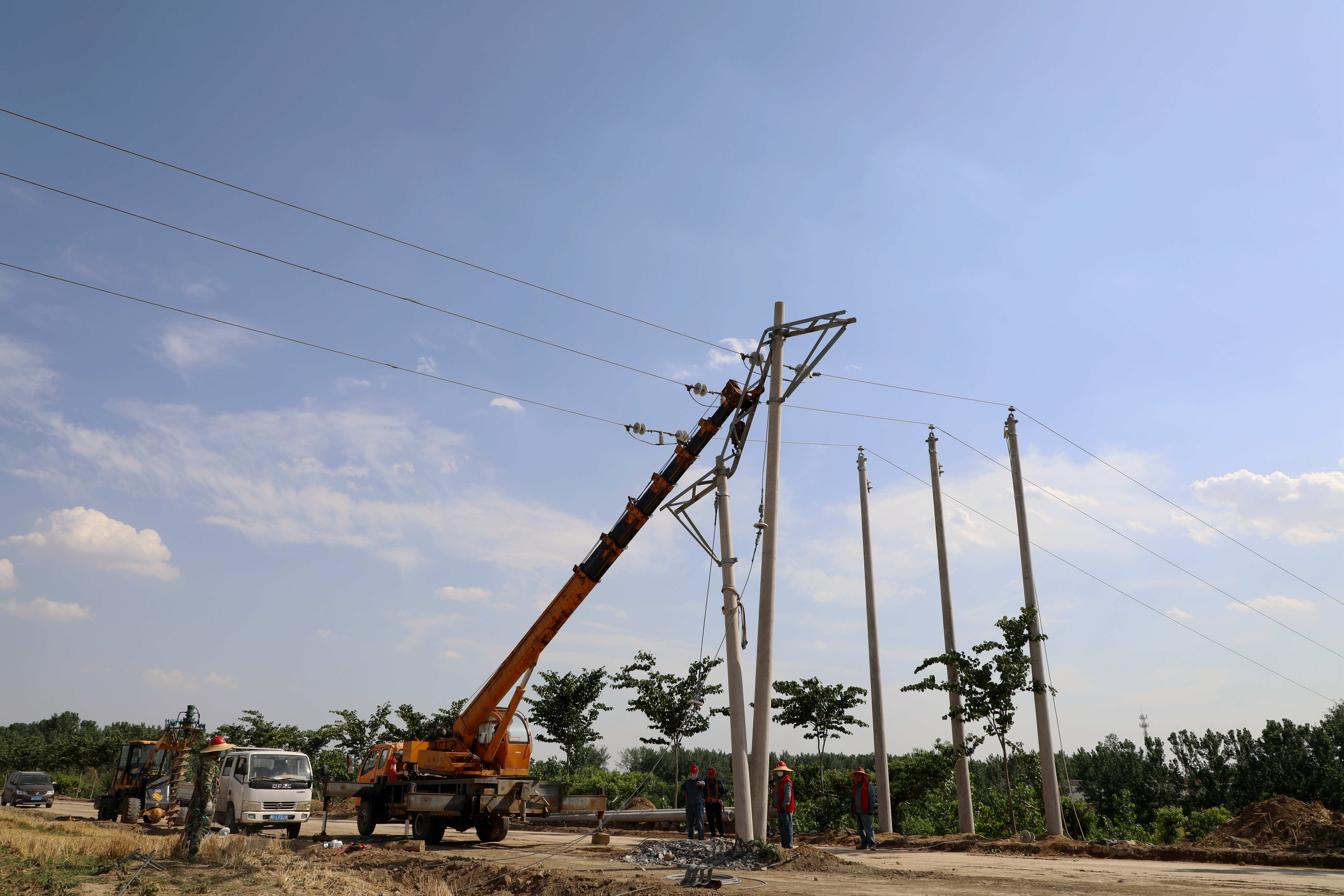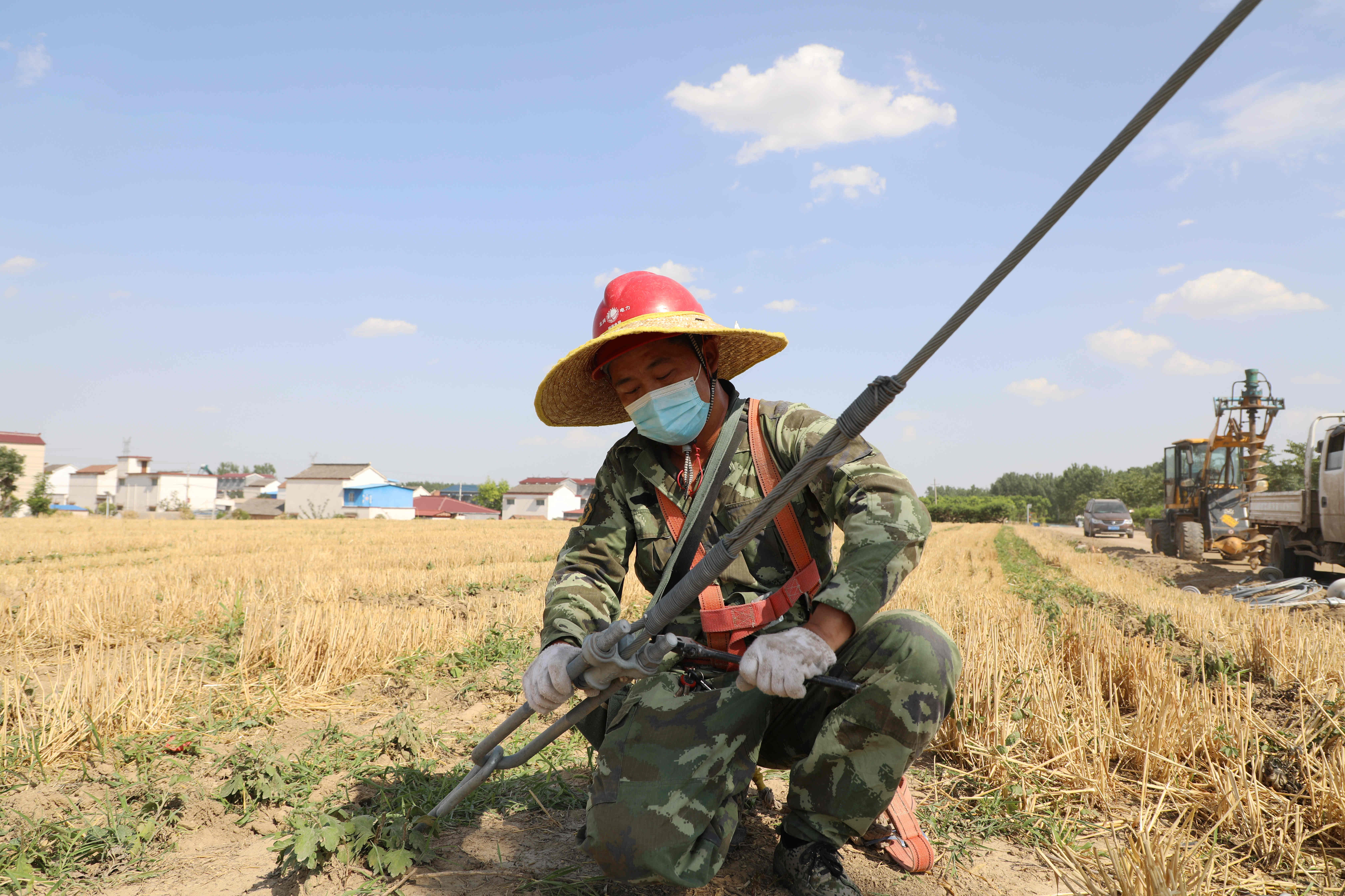 6月13日11時(shí),天氣格外晴朗,烈日下氣溫突破38攝氏度。西華縣黃橋鄉(xiāng)潁河河堤上一片忙碌的景象,該縣供電公司搶修人員正在烈日下緊張有序地忙活著。