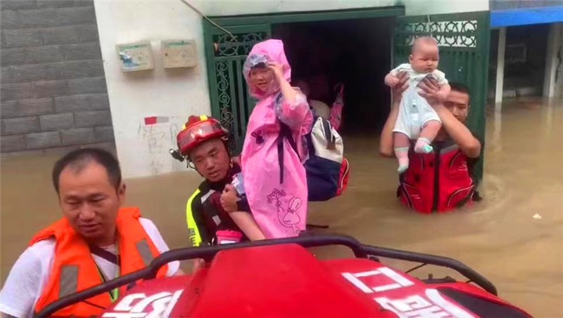 在2020年的抗洪戰(zhàn)斗中,晉松奇率領(lǐng)5人增援小組,星夜馳援河南信陽、安徽六安兩地。在信陽,小組累計出動舟艇13艘次,疏散人員63人、營救49人,共計112人,連續(xù)救援26小時;在安徽,小組開展作戰(zhàn)行動16次,營救被洪水圍困的群眾183人。在轉(zhuǎn)移被困人員的戰(zhàn)斗中,他小心抱起嬰兒的畫面被拍下發(fā)至網(wǎng)上,被網(wǎng)友評價“你小心的樣子,真帥!”談起這段視頻,晉松奇笑著說:“孩子太小了,抱著的時候特別緊張,就一直托著,但因為水太深,還是踩空一步,心里當時咯噔一下。后來看到視頻下面有個評論特別有意思,說我抱孩子像抱著炸彈一樣。”2021年7月中下旬,晉松奇又一次主動遞交請戰(zhàn)書加入周口消防支隊防汛救災(zāi)突擊隊,前往扶溝前置備勤。帶隊組建舟艇搜救小組,挨家挨戶搜尋200多家農(nóng)戶,轉(zhuǎn)移受困群眾13名。