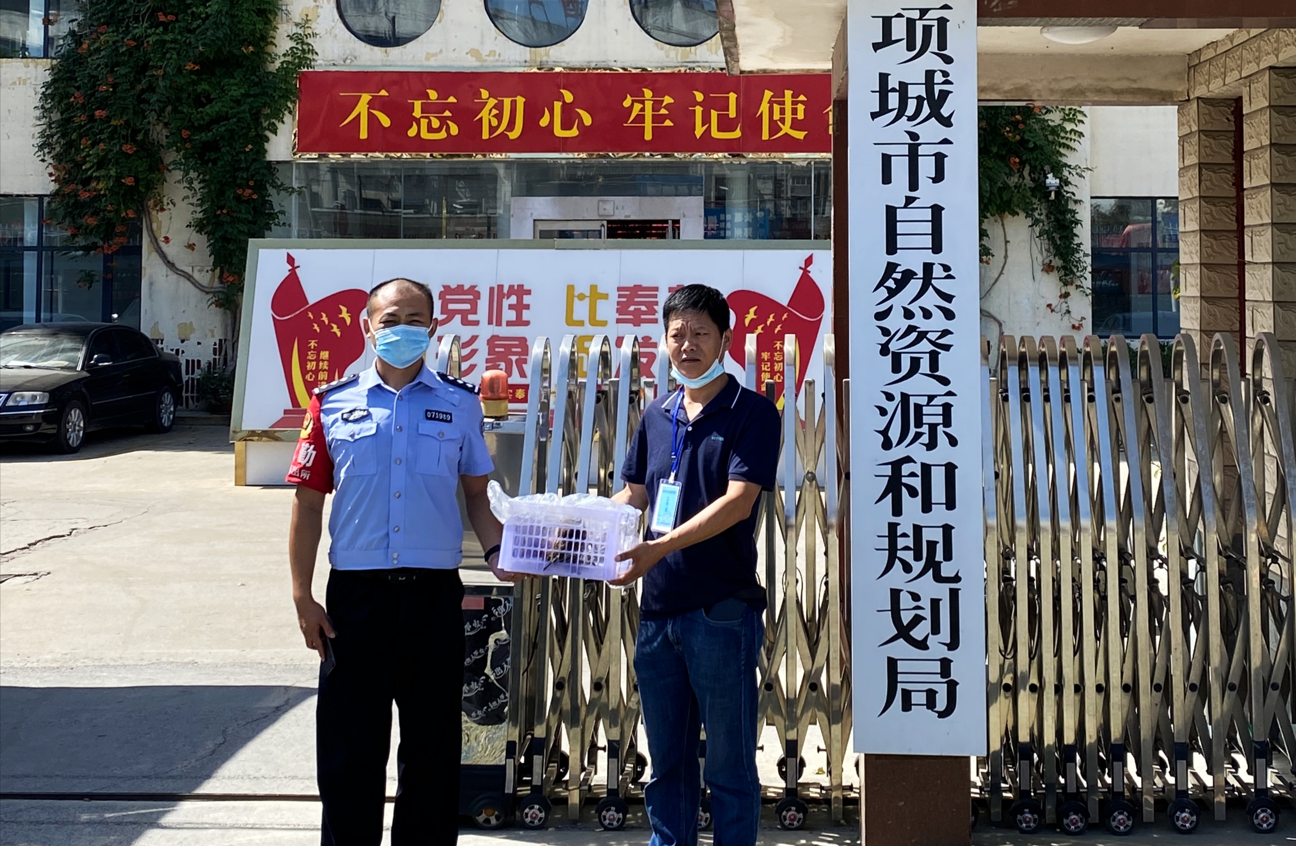8月14日9時(shí)許,天氣炎熱,項(xiàng)城市公安局水寨派出所一民警駕車來(lái)到項(xiàng)城市自然資源和規(guī)劃局,向野生動(dòng)物保護(hù)人員張向忠現(xiàn)場(chǎng)移送一只受傷的斑頭鵂鹠。