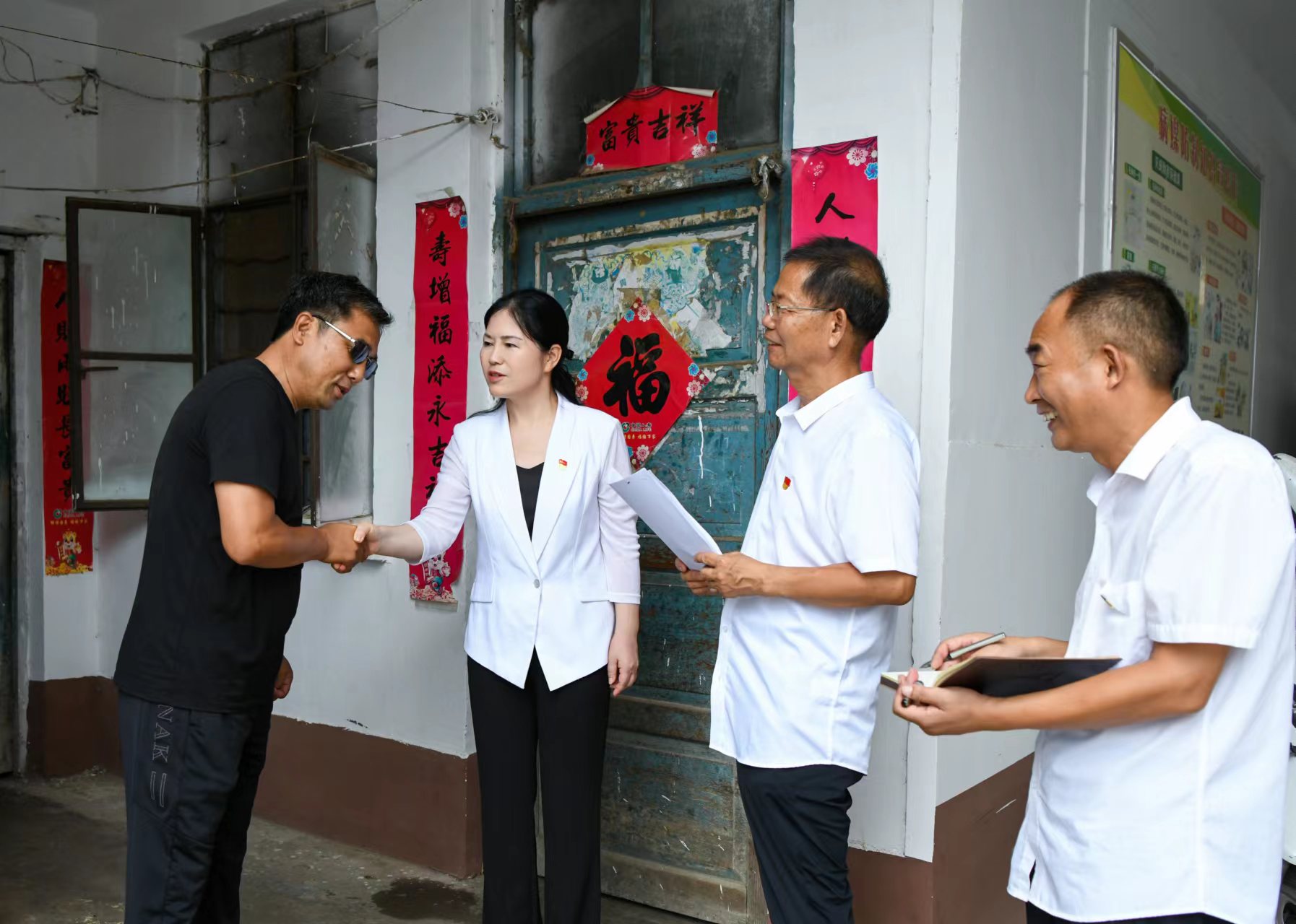 2022年1月30日,淮陽區(qū)一房地產(chǎn)項目因拖欠農(nóng)民工工資導致來自四川、湖北、河南信陽的300多名農(nóng)民工到區(qū)信訪局上訪。由于春節(jié)臨近,人員難找,問題遲遲得不到解決,農(nóng)民工情緒非常激動,揚言要圍堵區(qū)委、區(qū)政府。王瑞霞主動擔當,一邊與農(nóng)民工代表談心,一邊與相關(guān)部門溝通,召集住建、人社、公安等部門與開發(fā)商、建筑商召開協(xié)調(diào)會。經(jīng)過連續(xù)15個小時的交涉,問題得到妥善解決,成功將560余萬元工資以微信轉(zhuǎn)帳的形式發(fā)放到農(nóng)民工的賬戶。次日清晨,領(lǐng)到工資的農(nóng)民工把區(qū)信訪局接待中心打掃得干干凈凈,還貼上了春聯(lián)。幾個農(nóng)民工眼里含著熱淚說:“王局長連夜為我們要回了工資,我們終于能回家過年了,買錦旗來不及,我們只有通過這種方式來表達謝意!”