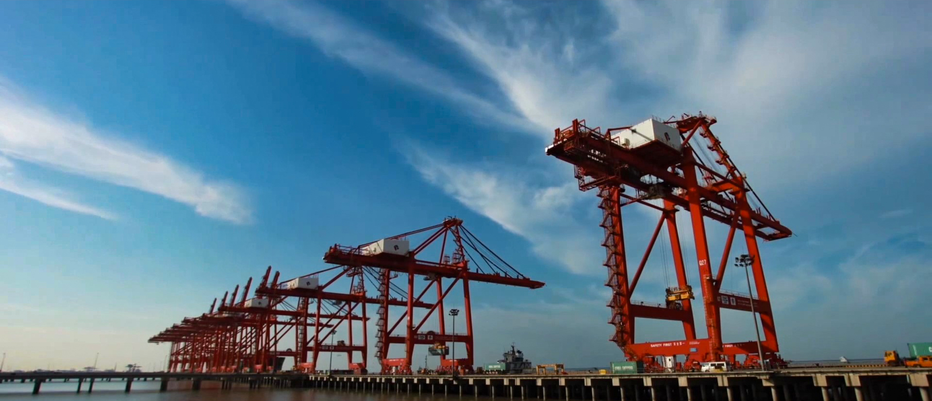 “太倉(cāng)港位于長(zhǎng)江入海口南岸,地處‘長(zhǎng)江經(jīng)濟(jì)帶’和‘21世紀(jì)海上絲綢之路’交匯處,擁有38.8公里的黃金岸線(xiàn)、-12.5米深水航道,區(qū)位優(yōu)勢(shì)十分顯著?!瘪R沛宇指著看臺(tái)上的展板興致勃勃地對(duì)我們說(shuō),目前,太倉(cāng)港已建成投運(yùn)各類(lèi)碼頭泊位95個(gè)(萬(wàn)噸級(jí)以上泊位40個(gè)),其中集裝箱泊位14個(gè),形成了集裝箱、件雜貨、干散貨、液體化工、裝備制造5大作業(yè)區(qū)。