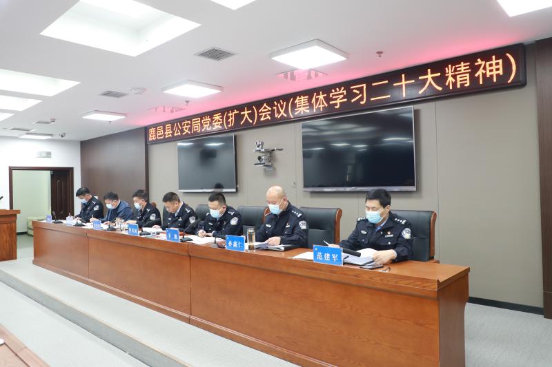 11月3日下午,鹿邑縣公安局組織召開(kāi)黨委(擴(kuò)大)會(huì)議,對(duì)黨的二十大、二十屆一中全會(huì)精神進(jìn)行專(zhuān)題學(xué)習(xí)。鹿邑縣副縣長(zhǎng)、公安局黨委書(shū)記、局長(zhǎng)韓鳳城主持會(huì)議,局黨委班子成員,各科所隊(duì)室負(fù)責(zé)人、刑警各中隊(duì)負(fù)責(zé)人參加會(huì)議。