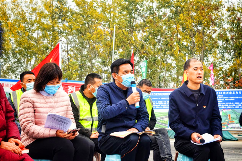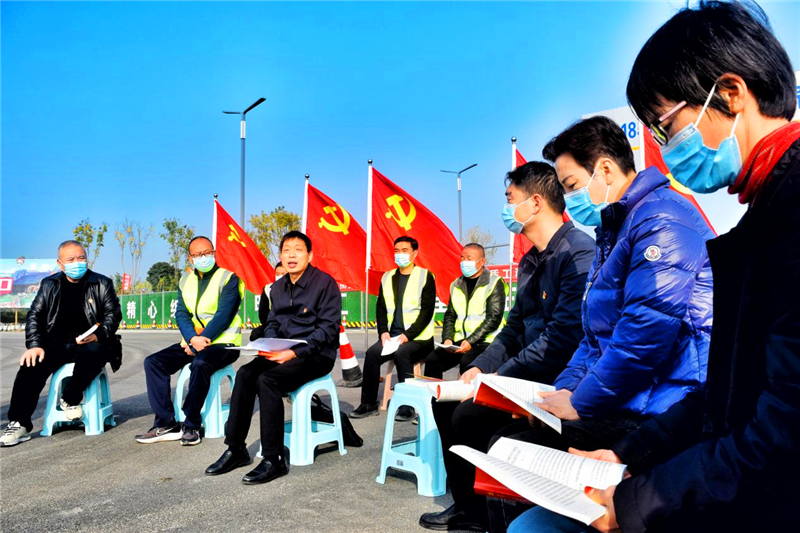黨旗迎風(fēng)飄揚(yáng),機(jī)器轟鳴作響,伴隨著壓路機(jī)、挖土機(jī)等施工機(jī)械的作業(yè)聲,周口市公路系統(tǒng)職工在項(xiàng)目施工現(xiàn)場學(xué)習(xí)黨的二十大精神成為一道亮麗的風(fēng)景。