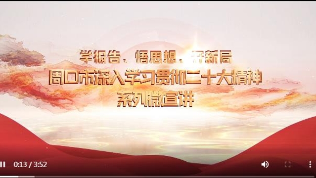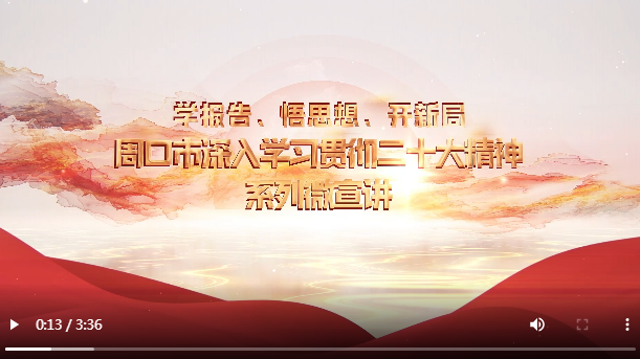 為深入學(xué)習(xí)貫徹黨的二十大精神,中共周口市委宣傳部、中共周口市委黨校和周口報業(yè)傳媒集團共同制作“學(xué)報告 悟思想 開新局”系列宣講微視頻,將分專題陸續(xù)推出。