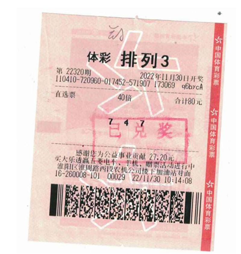 體彩排列3游戲作為每天一期,天天開獎的小盤游戲,以號碼少、玩法簡單、固定獎金等特點受到廣大購彩者的青睞,自上市以來“圈粉”無數(shù)。11月30日,排列3第22320期開出“7、4、7”,周口淮陽一名購彩者收獲“排列3”40倍直選獎,獎金達41600元。