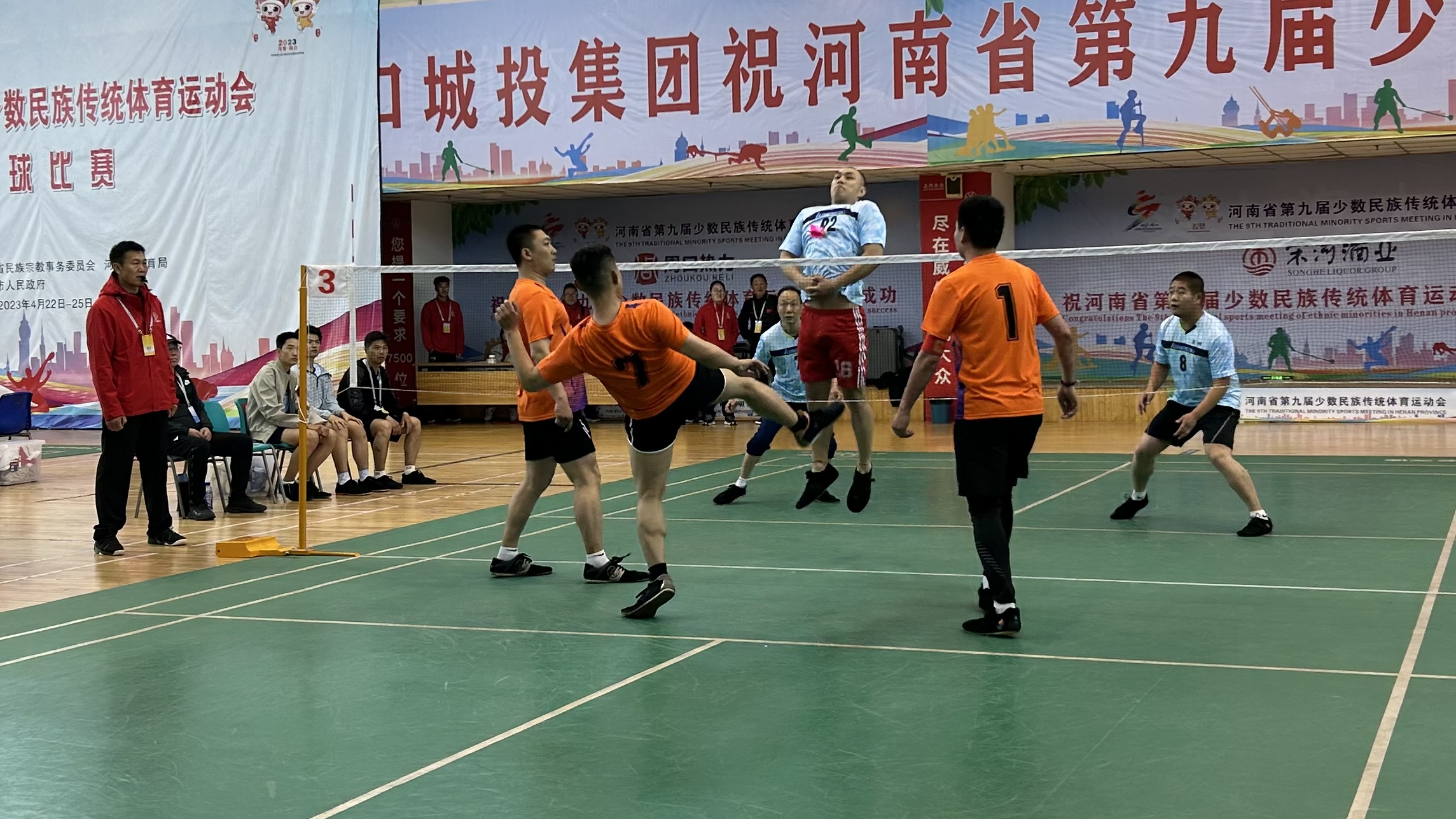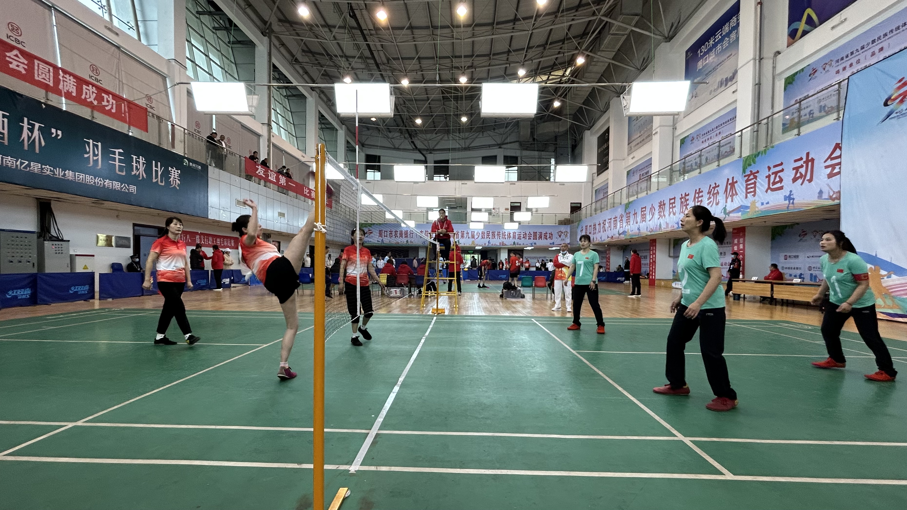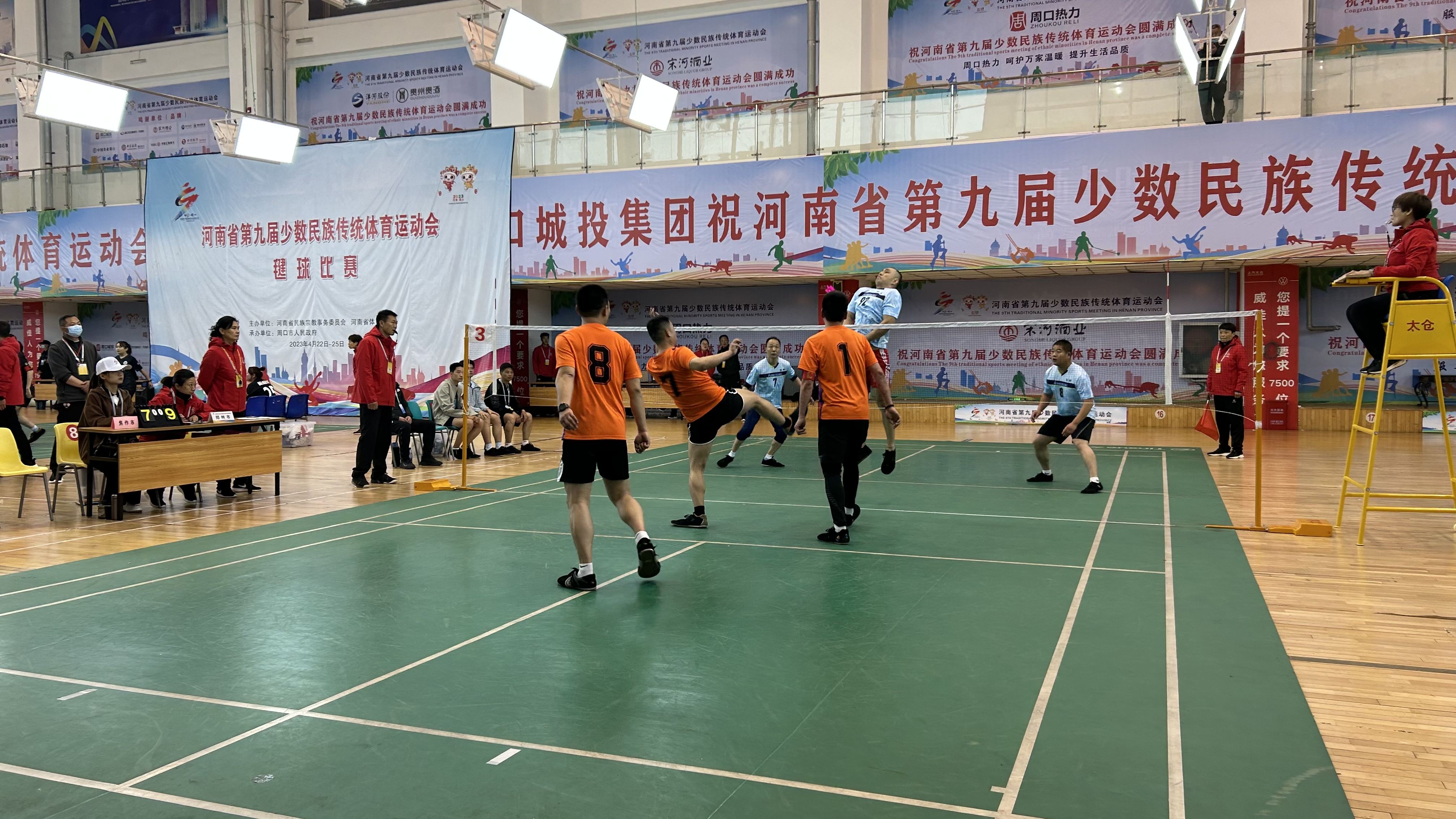 4月23日,第九屆全省民族運(yùn)動(dòng)會(huì)毽球競(jìng)賽在市體育中心羽毛球館激情開賽,選手們每一次驚險(xiǎn)的接發(fā)球進(jìn)攻,都引來現(xiàn)場(chǎng)觀眾的陣陣叫好,現(xiàn)場(chǎng)氣氛?qǐng)F(tuán)結(jié)熱烈。