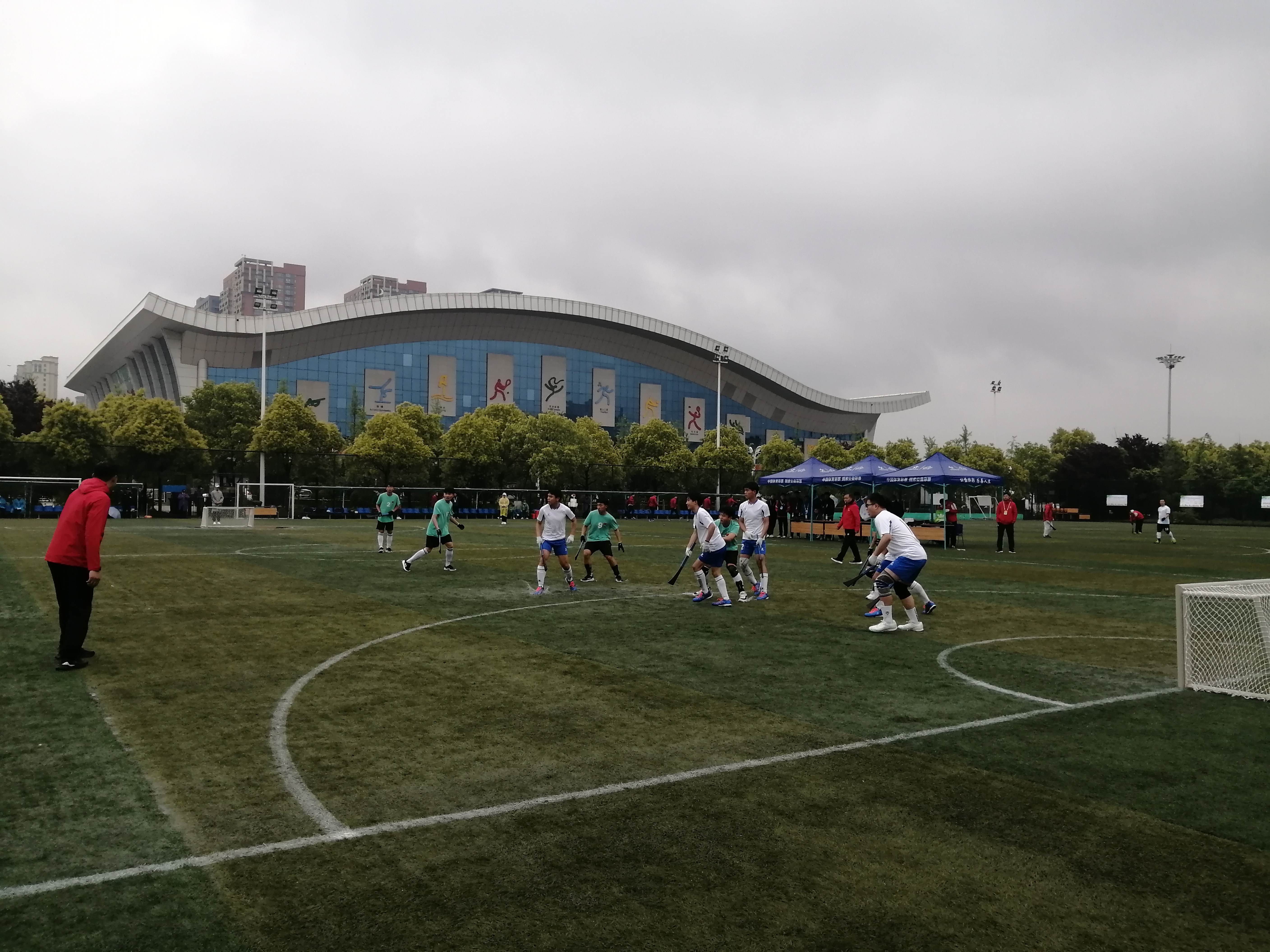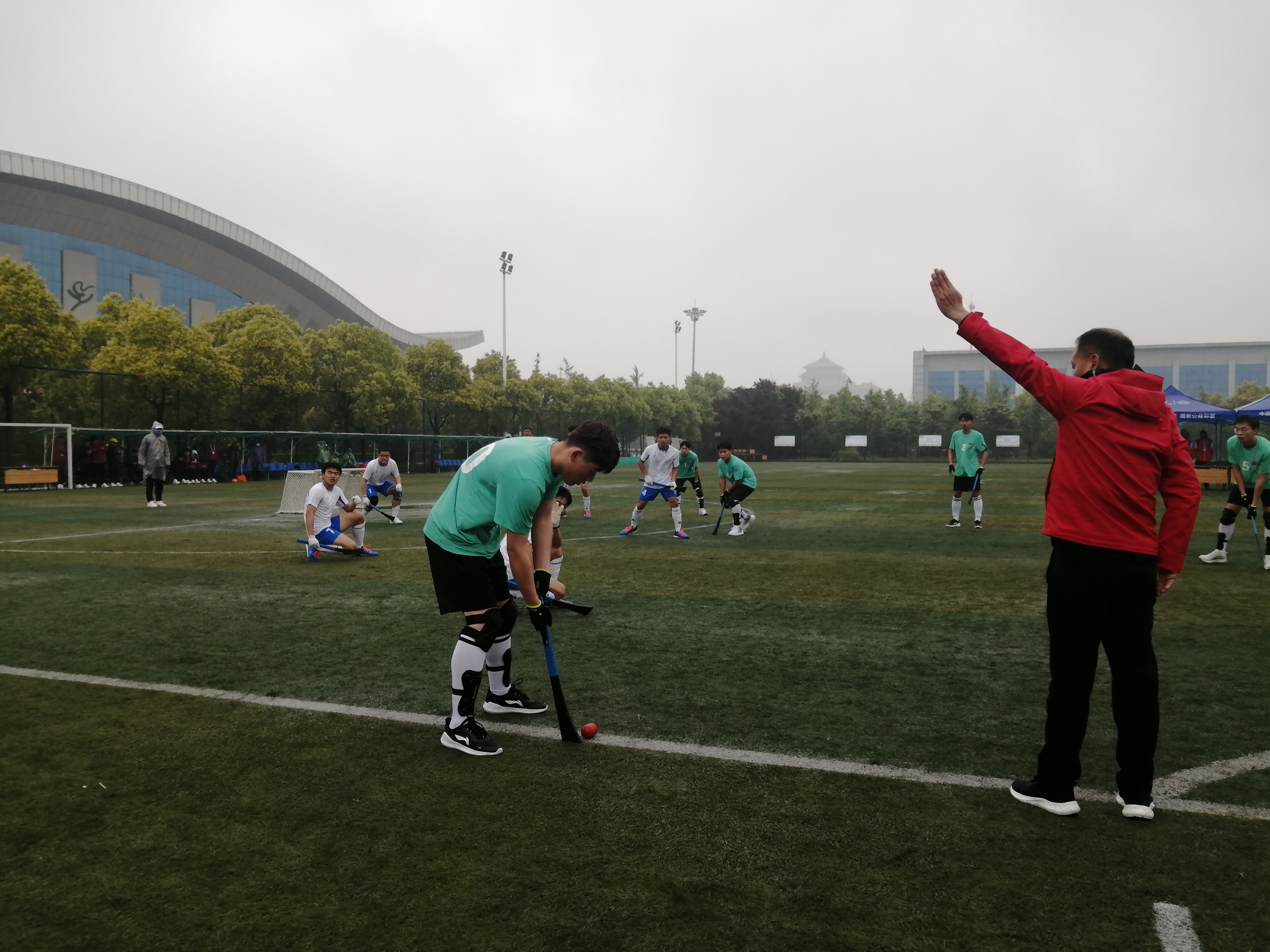 上午8時(shí)30分,淅瀝瀝小雨和大幅降溫讓大家感到非常不適,周口和鄭州兩支代表隊(duì)的10名運(yùn)動(dòng)員卻精神抖擻齊聚賽場(chǎng)。隨著一聲哨響比賽開始,兩隊(duì)球員揮動(dòng)擊球板擊打木球,一場(chǎng)激烈比賽便開始了。