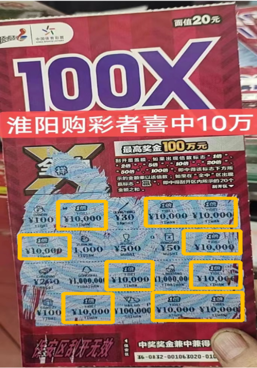 據(jù)悉,王先生所在的淮陽區(qū)新站鎮(zhèn)上只有一家編號為4116260032的體彩實(shí)體店,由于離自己居住的地方較近,每次路過這家體彩實(shí)體店就喜歡挑幾張體彩頂呱刮來試試手氣。當(dāng)天,王先生如往常一樣來到這家體彩實(shí)體店,在實(shí)體店代銷者的推薦下王先生挑選了幾張最近新上市的面值為20元的“超級加倍II”。沒想到其中一張竟刮出了10萬元大獎,王先生激動地連忙找實(shí)體店代銷者確認(rèn),經(jīng)過認(rèn)真核對王先生確實(shí)是中得10萬元大獎。