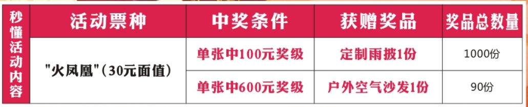 為回饋廣大購彩者對中國體育彩票的支持與厚愛,河南省體育彩票管理中心周口分中心在2023年5月22日—2023年6月30日針對體彩頂呱刮新票“火鳳凰”開展促銷活動,體彩頂呱刮新上市票種30元面值“火鳳凰 ”攜精美好禮,重磅來襲。具體內容如下:
