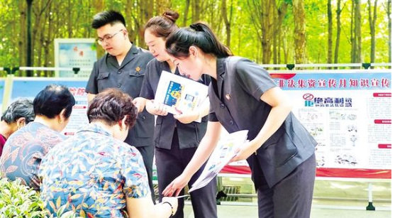 6月15日,項(xiàng)城市在北公園舉行以“守住錢袋子·護(hù)好幸福家”為主題的2023年防范非法集資宣傳月活動(dòng),副市長(zhǎng)戶超品走進(jìn)現(xiàn)場(chǎng),與群眾一起了解如何進(jìn)行識(shí)別非法集資常見(jiàn)的一些“套路”。