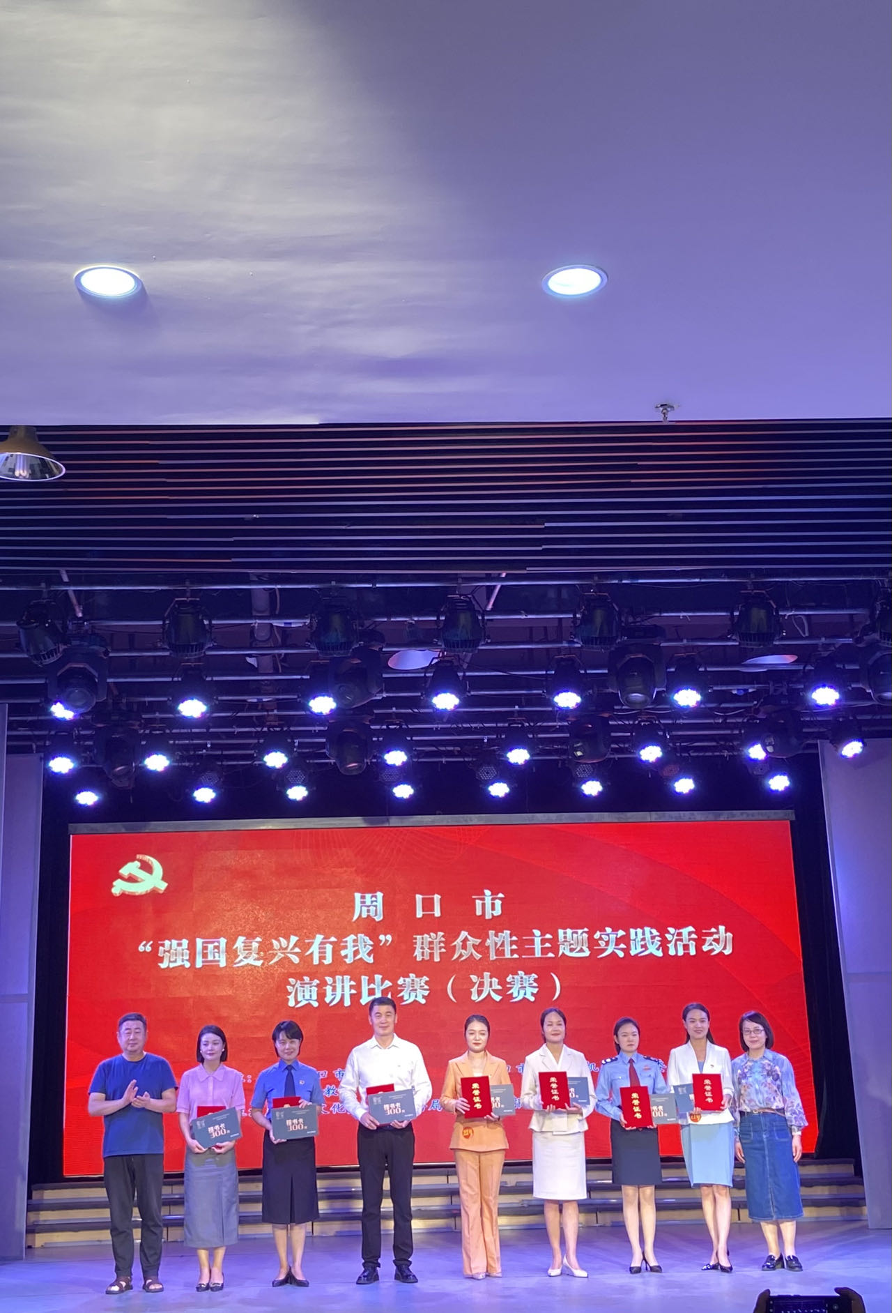 決賽過(guò)程中,選手立足中國(guó)式現(xiàn)代化全面推進(jìn)中華民族偉大復(fù)興的廣闊征程, 以各自學(xué)習(xí)、工作、生活為視角,以微故事、微黨課、微講述為主要方式,用飽滿的熱情講述了學(xué)習(xí)宣傳貫徹黨的二十大精神的個(gè)人感悟、具體實(shí)踐;講述了錨定“兩個(gè)確?!?,實(shí)施 “ 十大戰(zhàn)略”,推進(jìn)中國(guó)式現(xiàn)代化周口實(shí)踐的實(shí)際行動(dòng);講述了繁榮發(fā)展文化事業(yè),深入實(shí)施文旅文創(chuàng)融合戰(zhàn)略周口實(shí)踐之“我”的認(rèn)識(shí)。選手們情感充沛、慷慨激昂,“強(qiáng)國(guó)有我 請(qǐng)黨放心”的口號(hào)鏗鏘有力,響徹劇場(chǎng),展示了一代周口青年奮力譜寫中國(guó)式現(xiàn)代化周口絢麗篇章的信心和決心。