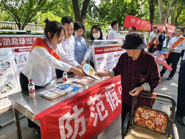 活動(dòng)當(dāng)天,該行組織員工前往五一廣場(chǎng)開展集中宣傳,通過(guò)設(shè)置宣傳咨詢臺(tái),懸掛橫幅,向群眾發(fā)放反假幣、愛護(hù)人民幣和打擊假幣犯罪宣傳折頁(yè),普及數(shù)字人民幣知識(shí),宣傳人民幣防偽知識(shí)和識(shí)別假幣騙局,傳遞“防范假幣,保護(hù)自我”理念。針對(duì)老年客戶風(fēng)險(xiǎn)意識(shí)和識(shí)假能力不足問(wèn)題,該行開展“一對(duì)一,手把手”現(xiàn)場(chǎng)教授假幣“看、摸、聽、測(cè)”等識(shí)別方法,切實(shí)守牢老年客戶的“錢袋子”。