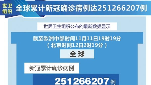 世衛(wèi)組織全球累計(jì)新冠確診病例達(dá)251266207例 ……[詳細(xì)]