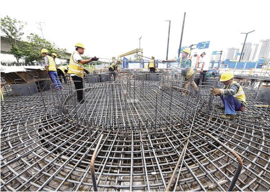 9月15日上午,中鐵十局的工人正在安裝轉(zhuǎn)體橋上承臺鋼筋,為澆筑做準備。位于周口太清路的平漯周高鐵轉(zhuǎn)體橋經(jīng)過5個月的地下基礎(chǔ)施工,目前轉(zhuǎn)入地面以上橋墩結(jié)構(gòu)施工。
