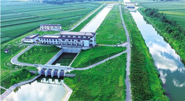 8月26日,“引江濟(jì)淮”河南源頭鄲城袁橋泵站水質(zhì)清澈,四周綠意盎然。
