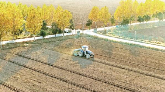 11月22日,在鄲城縣胡集鄉(xiāng)的一處農(nóng)田里,農(nóng)戶搶抓時機播種小麥。