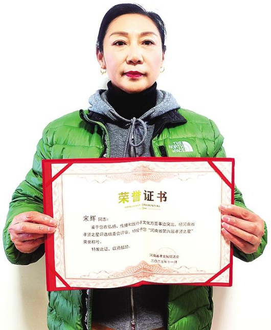 12月13日,一份承載著榮譽(yù)的郵件抵達(dá)淮陽區(qū)淮寧街道。當(dāng)天,退休職工宋輝收到了來自河南省第六屆“孝賢之星”評(píng)選組委會(huì)寄來的燙金榮譽(yù)證書、紀(jì)念勛章及綬帶,她被評(píng)選為河南省第六屆“孝賢之星”。