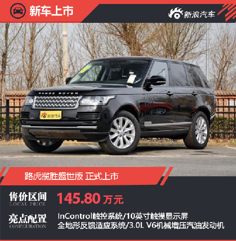 今日,路虎宣布攬勝盛世版正式上市,指導售價為145.80萬元?!?a href="http://m.fanwenbi.com/content/2017-10/12/content_578072.htm" target="_blank" >[詳細]