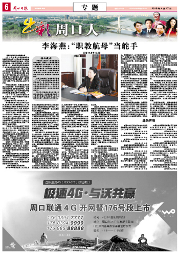 4月13日下午,在周口科技職業(yè)學(xué)院,記者采訪了周口“職教航母”的船長和舵手——李海燕。