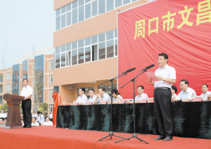 2012年,乘著周口市委“科教興周戰(zhàn)略”的東風(fēng),由周口市委、市政府、市東新區(qū)管委會傾力打造,投資3億元創(chuàng)辦的周口市文昌中學(xué)應(yīng)運而生。市委書記徐光親筆為該校題下“礪學(xué)弘文、昌達天下”的校訓(xùn)。