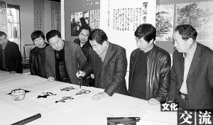 交流期間,兩地書法家飽蘸激情、揮毫潑墨,互相切磋技藝,在近兩個小時的時間里,創(chuàng)作出優(yōu)秀書法作品近百幅。參加交流活動的書法家們表示,此次書法交流筆會的舉辦,為兩地書法家提供了一個切磋技藝、互相交流、互相促進的平臺。他們將借此虛心學習,取長補短,不斷提高書法藝術水平,努力提升作品質(zhì)量,以更好地豐富當?shù)厝嗣袢罕姷奈幕睢?/P>