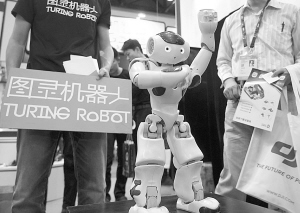4月28日,觀眾在2015全球移動互聯(lián)網(wǎng)大會上觀看一款語音識別智能機器人。當(dāng)日,為期3天的2015全球移動互聯(lián)網(wǎng)大會在北京開幕,大會匯聚了來自全球移動互聯(lián)網(wǎng)公司的創(chuàng)新領(lǐng)袖,探討行業(yè)熱點,分享全球移動互聯(lián)網(wǎng)領(lǐng)域的重大機遇與變革。