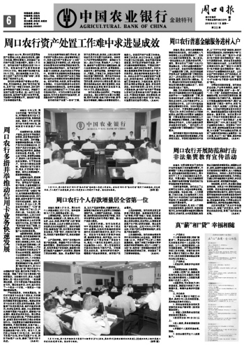 周口農(nóng)行個人存款增量居全省第一位