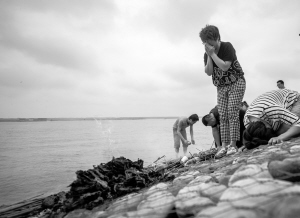 清晨5點多開始,長江江面下起淅淅瀝瀝的小雨,救援工作仍在緊張進行。為了哀悼逝者,參與救援的人員在起吊船上搭起一個簡易祭臺,上面擺滿蠟燭、香、黃色的菊花。8時50分許,江面船舶列好隊,靜靜寄托哀思。