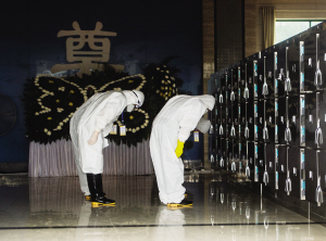 細(xì)心為逝者入殮    6月9日,在為遺體化妝前,入殮師在停靈間的冰柜前向逝者鞠躬。當(dāng)日,在湖北省監(jiān)利縣容城殯儀館,入殮師細(xì)心為遇難者入殮,辦理善后事宜。 新華社發(fā)