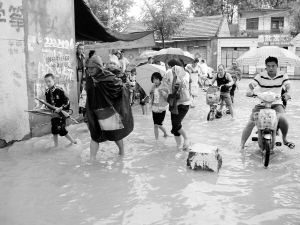 淮陽(yáng)城區(qū)部分路段積水成災(zāi) 晚報(bào)記者 杜欣 攝