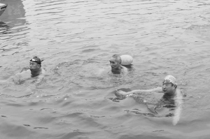 伸伸腰,扭扭腿……下水前,大家都要活動筋骨,避免發(fā)生意外。根據(jù)分組,大家按照次序來到河邊,聽到口令后,一個個魚躍河中。14歲的張毅來自許昌代表隊,賽后他激動地對記者說:“我很久之前就開始接觸游泳了,但是冬泳剛剛練習了3年,參加這樣的比賽很開心?!庇浾卟稍L發(fā)現(xiàn),冬泳愛好者比賽結(jié)束后很少關(guān)心自己的成績,他們說得最多的是“爽”。一位冬泳愛好者告訴記者,比賽成績不重要,重要的是這項運動能培養(yǎng)人的意志力以及使人保持開朗樂觀的生活態(tài)度,這才是他所追求的。