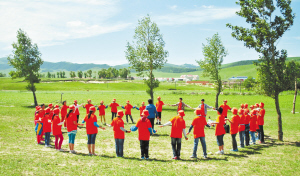 第二天:8:00到達(dá)北京,早餐后赴豐寧壩上草原,開營儀式;草原上拓展活動(dòng):快樂“拍拍拍”、“親手觀音”、“向前向前”、“排山倒?!钡扔螒?;晚上活動(dòng)分享,書寫親情傳真。